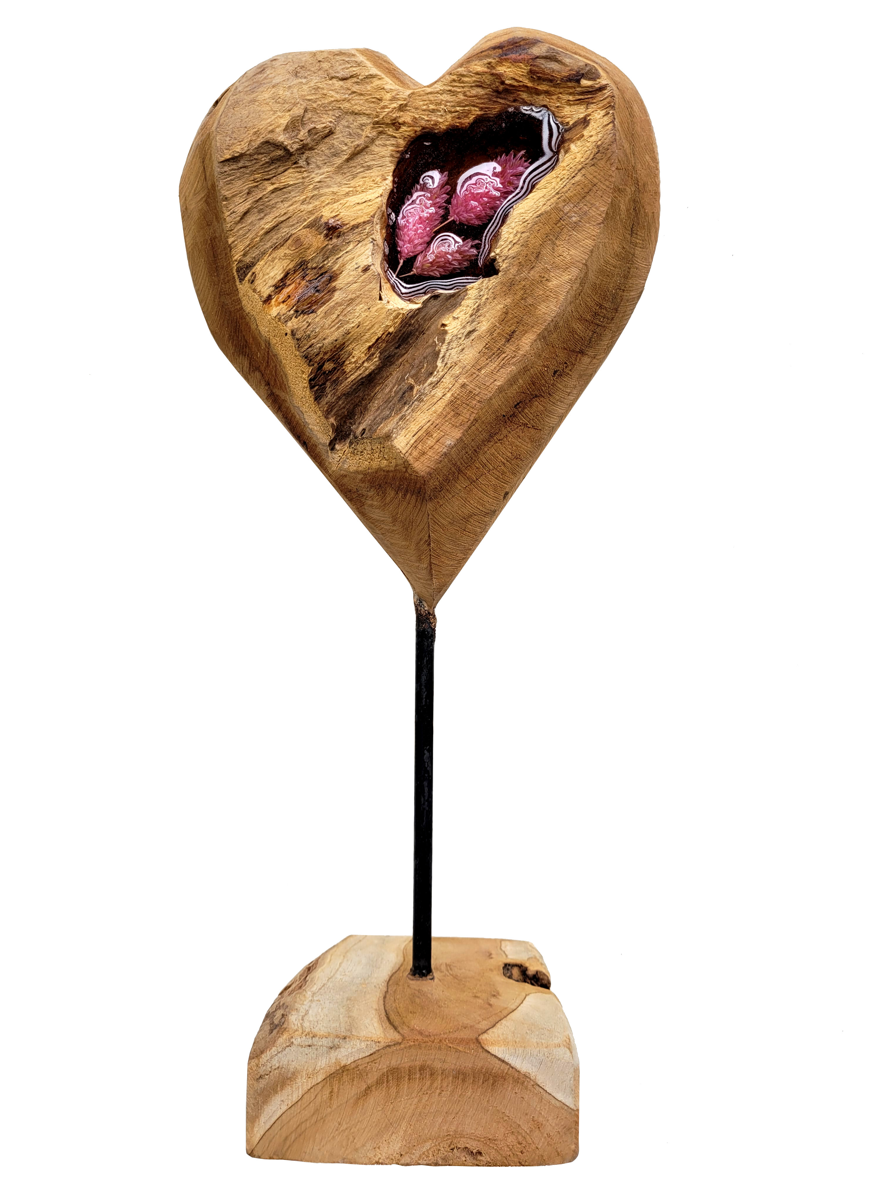 - Ručně vyrobená dekorace srdce - dřevo v kombinaci s transparentní pryskyřicí a květinami.
