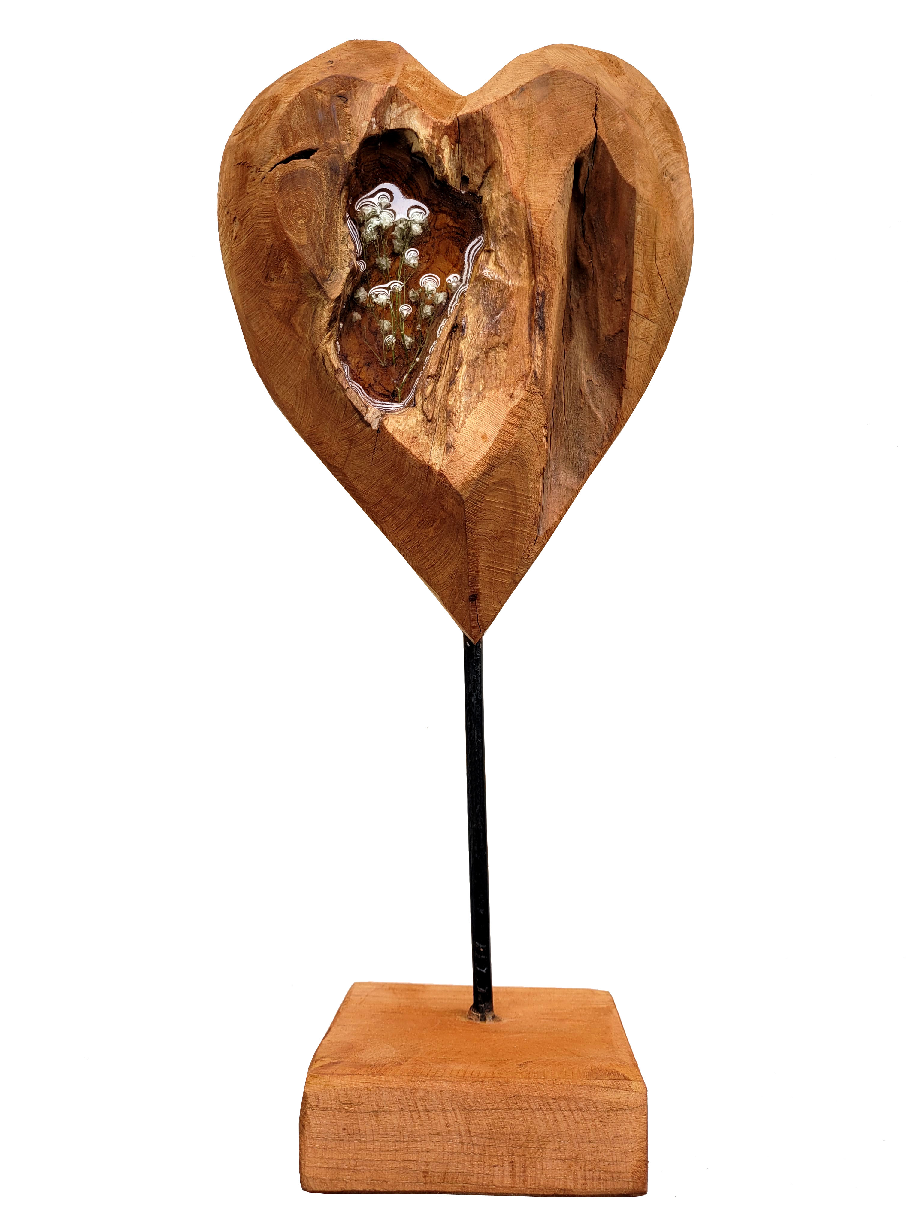 - Ručně vyrobená dekorace srdce - teakové dřevo v kombinaci s transparentní pryskyřicí.