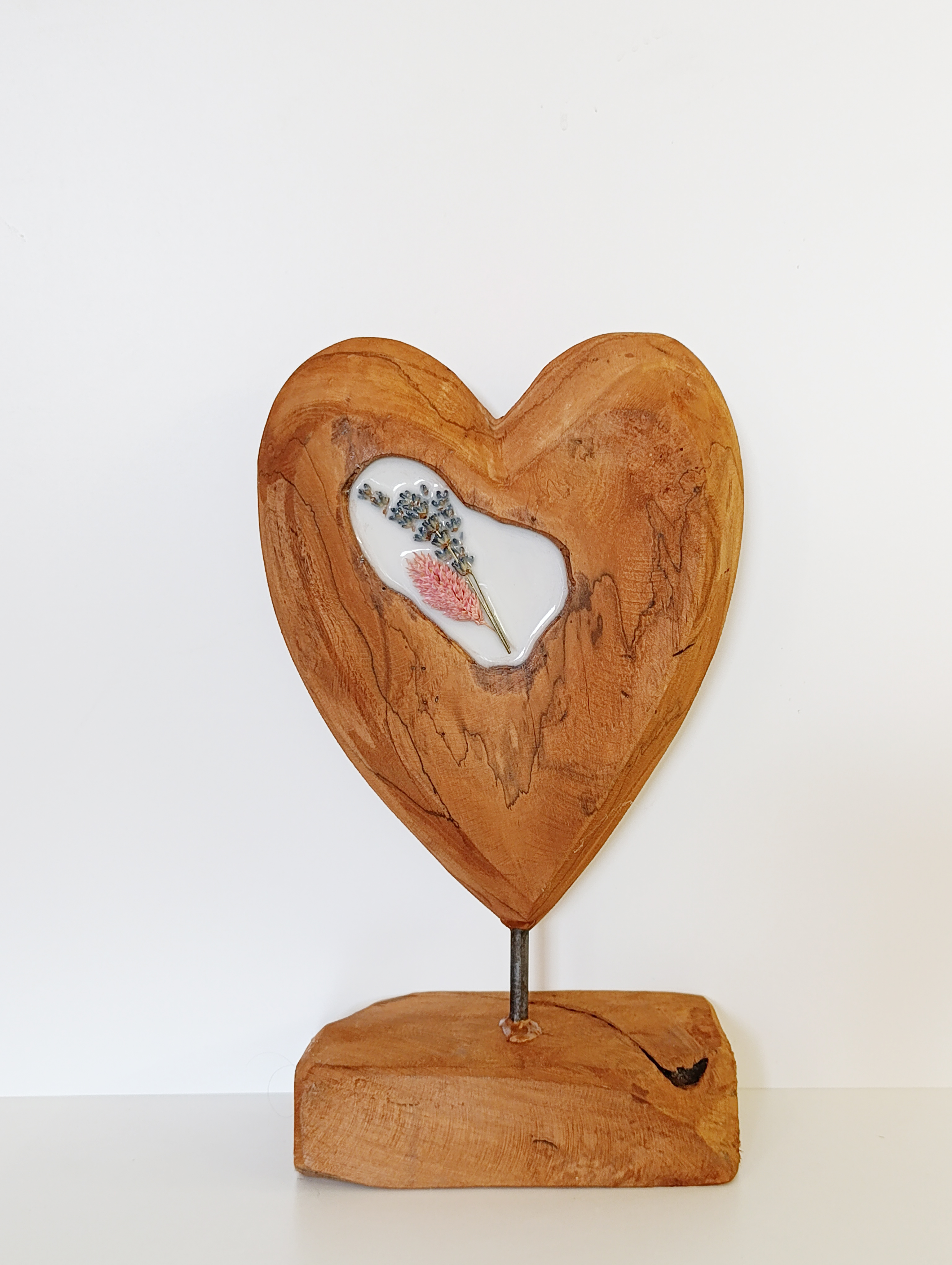 Ručně vyrobená dekorace srdce - teakové dřevo v kombinaci s bílou pryskyřicí.