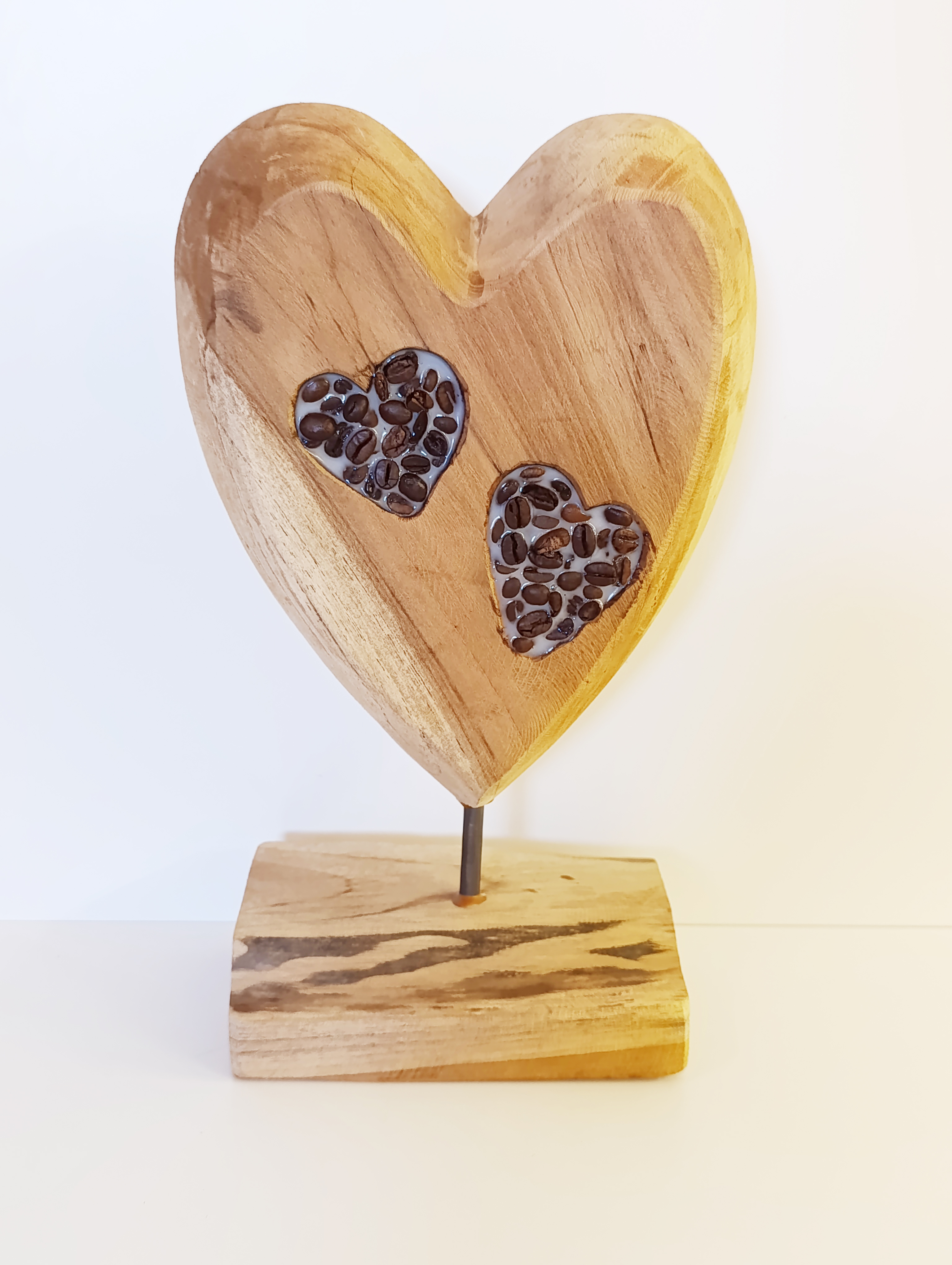 - Ručně vyrobená dekorace srdce - dřevo v kombinaci s transparentní pryskyřicí a kávovým zrnem.