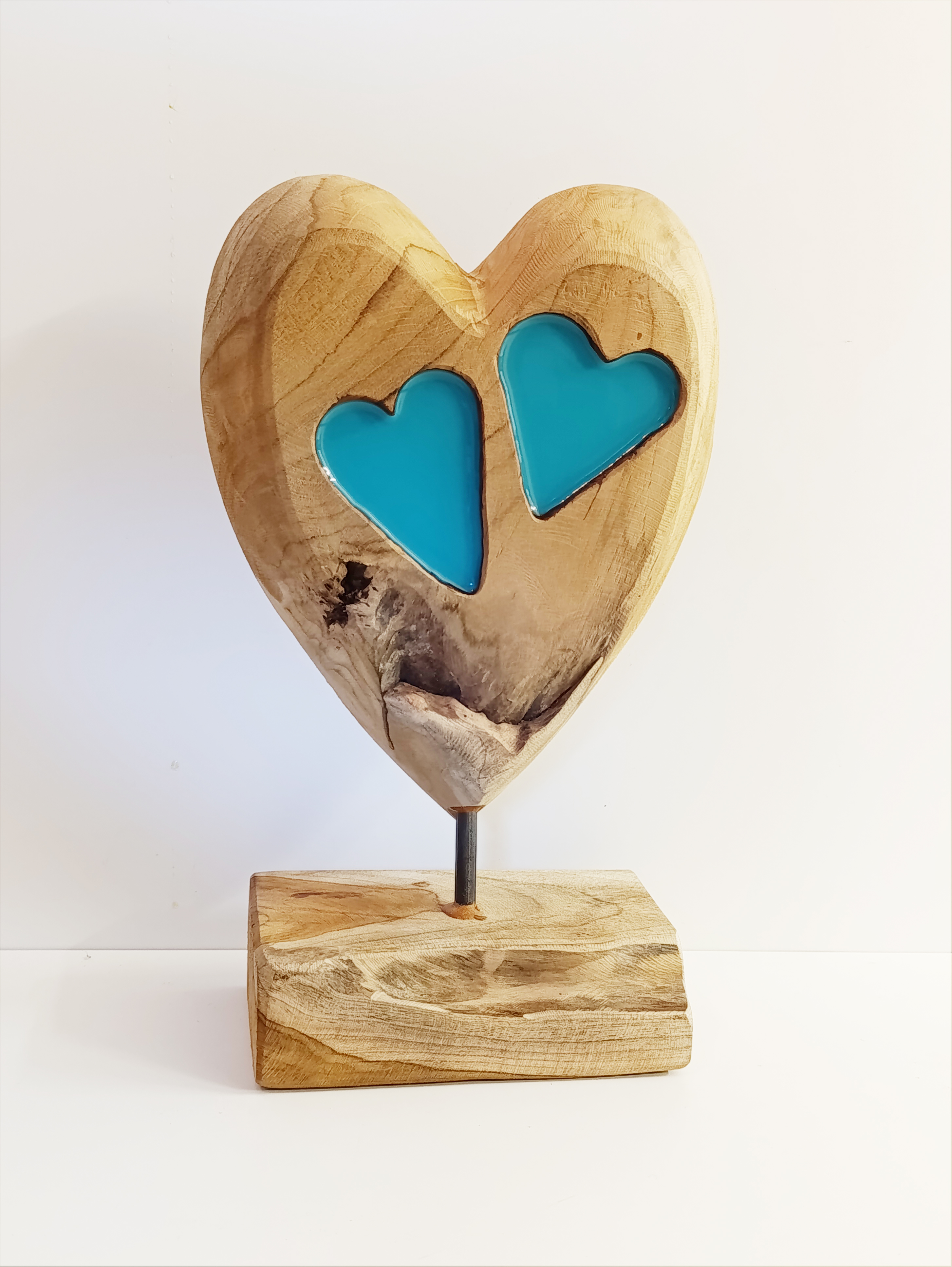 - Ručně vyrobená dekorace srdce - dřevo v kombinaci s tyrkysovou pryskyřicí.