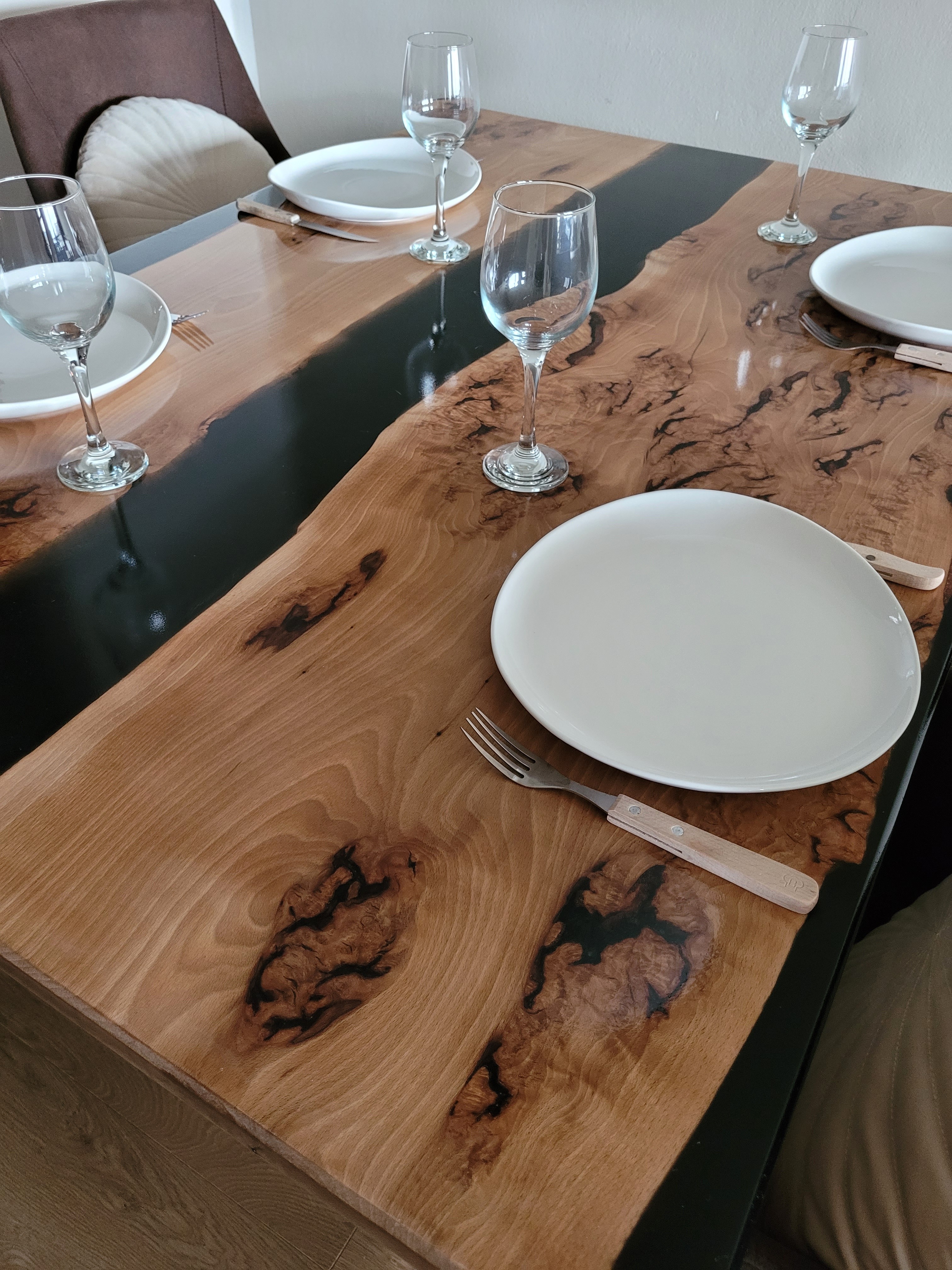 Malé servírovací prkénko o rozměrech 20 x 30 cm dekorované jehličím a bílou pryskyřicí.