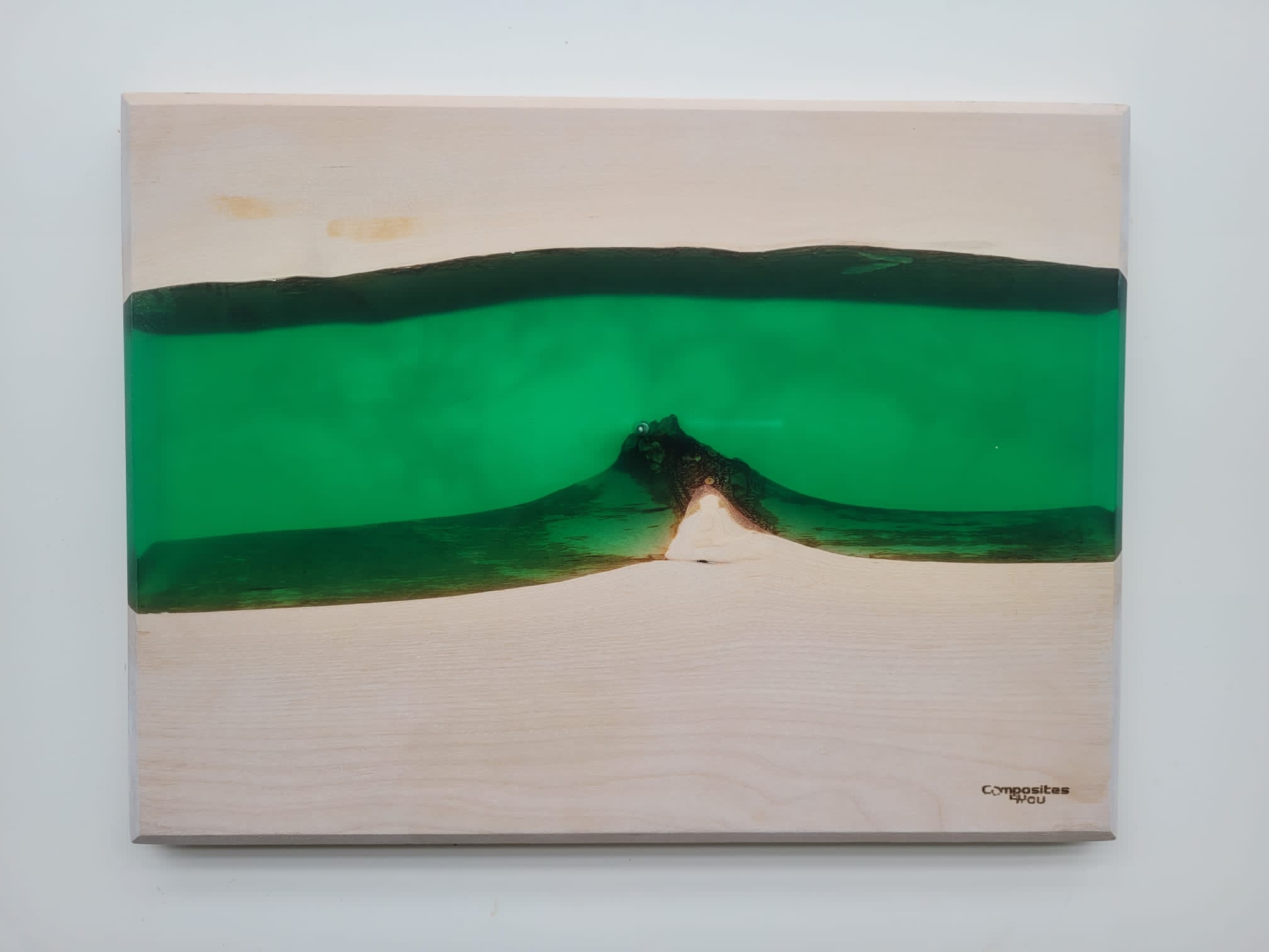 - Je dekorované zelenou pryskyřicí.