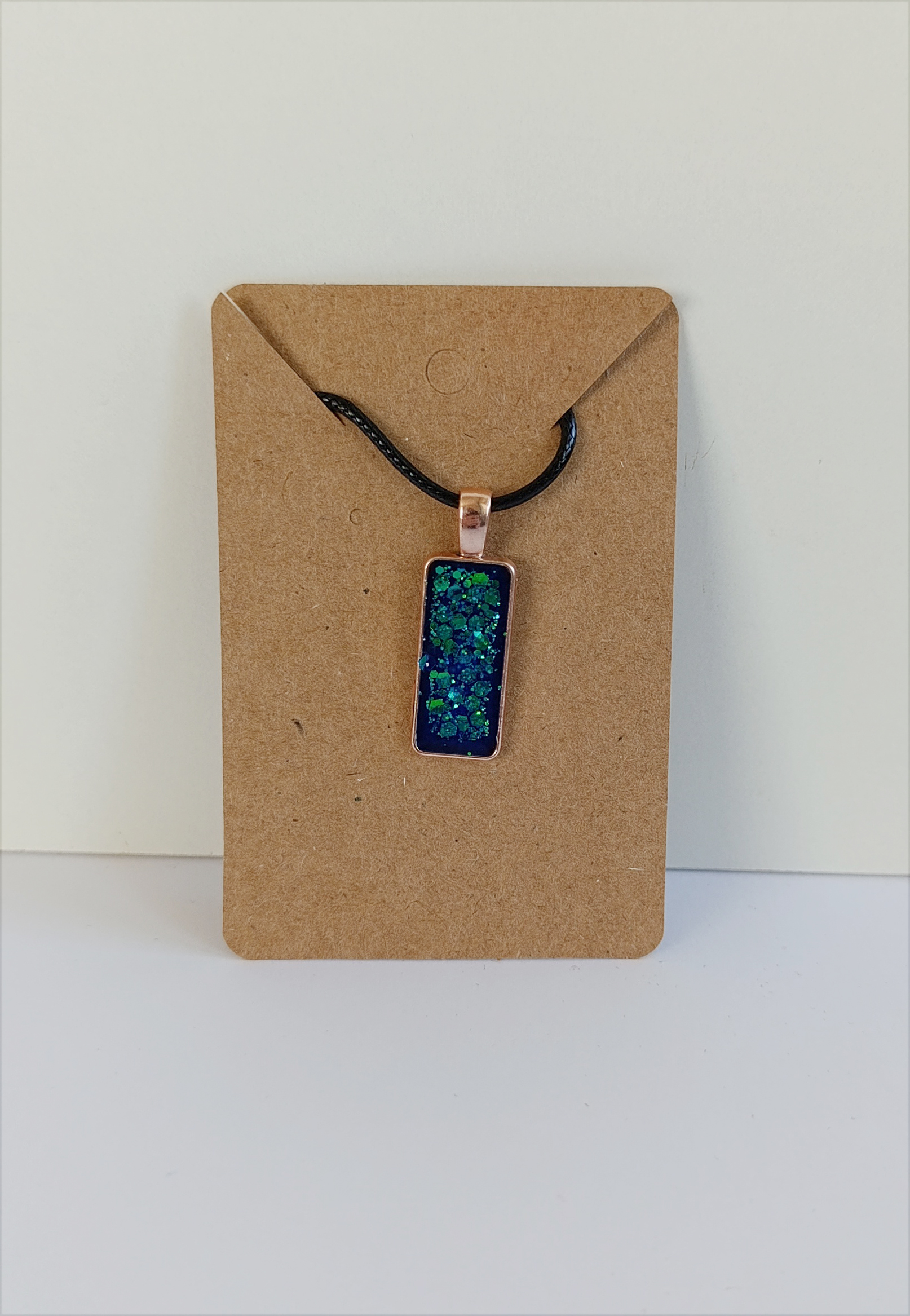 Náhrdelník provázkový - obdélník černý se třpytkami