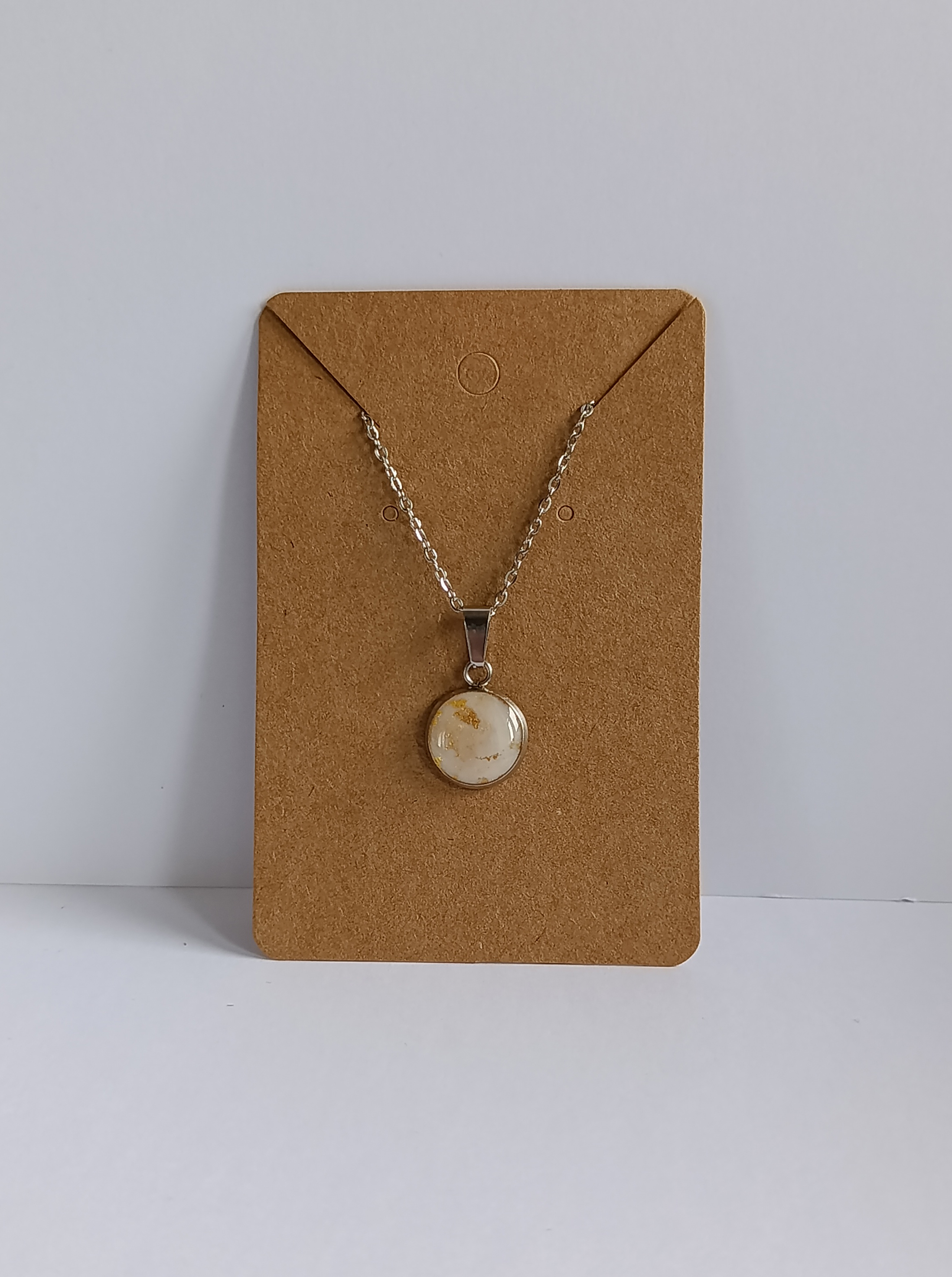 Luxusní šperk s pryskyřicí a jemným detailem. PRŮMĚR ozdoby: 22 mm DÉLKA řetízku: 45 cm …