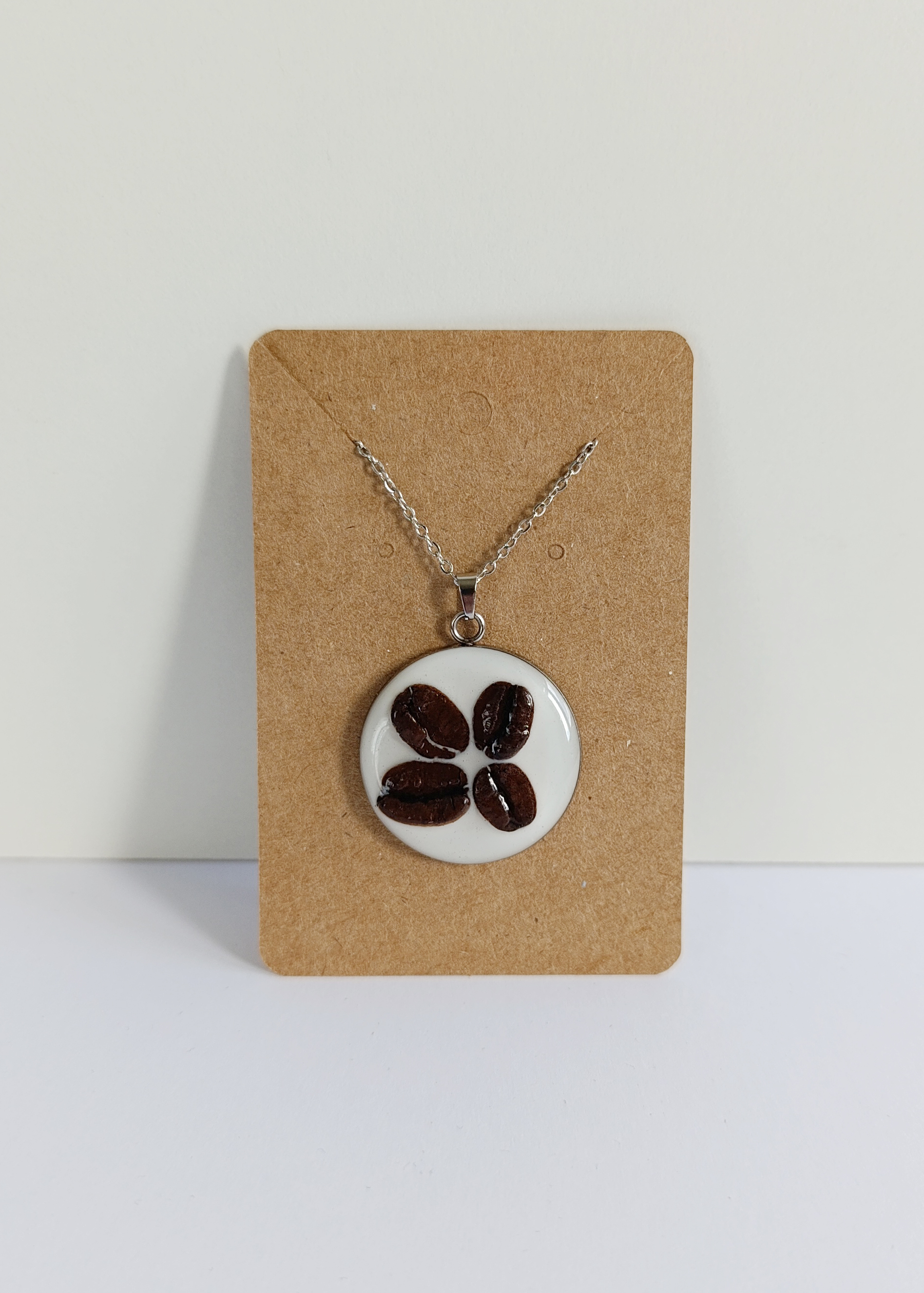 Náhrdelník řetízkový - kolečko bílé se zrnky kávy