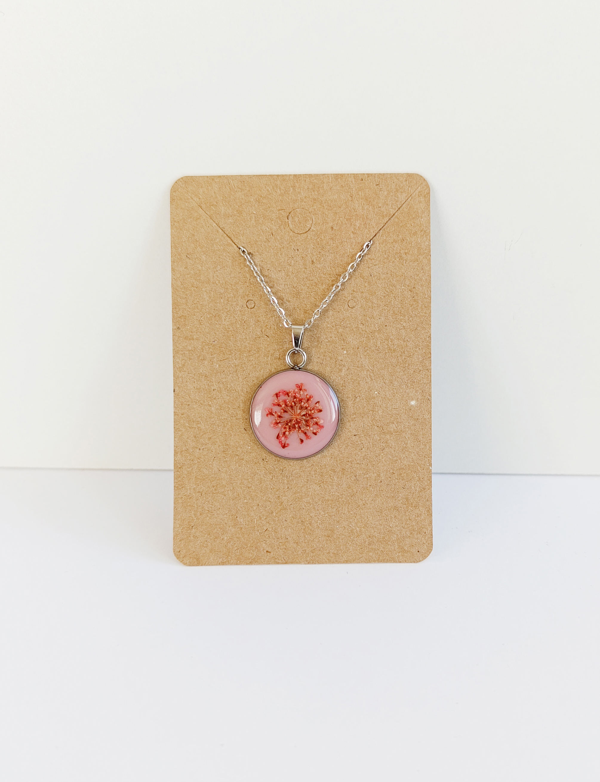 Náhrdelník řetízkový - kolečko s růžovou a květinou