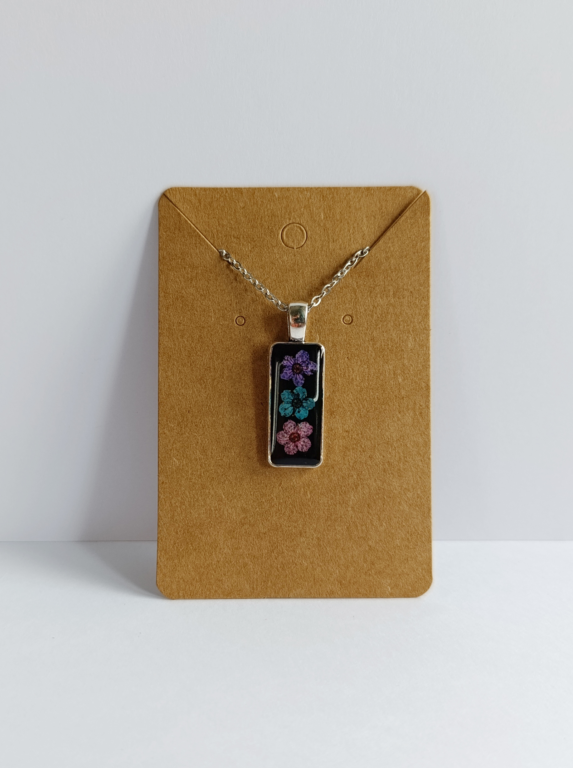 Náhrdelník řetízkový - obdélník černý s květinami I.