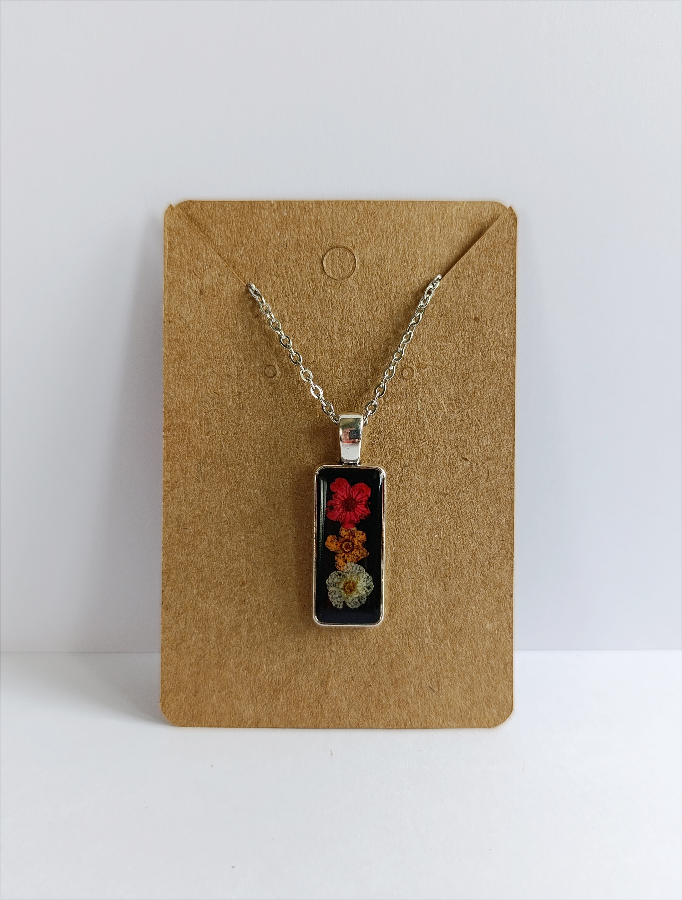 Náhrdelník řetízkový - obdélník černý s květinami II.