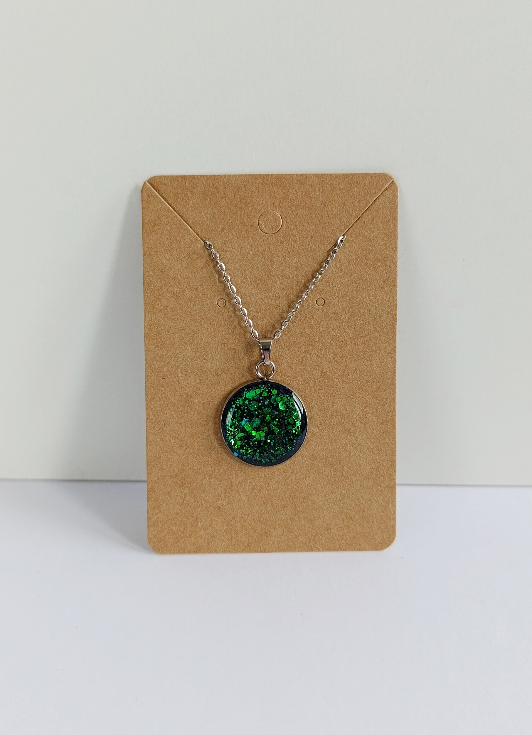 Luxusní šperk s pryskyřicí a jemným detailem. PRŮMĚR ozdoby: 33 mm DÉLKA řetízku: 45 cm …
