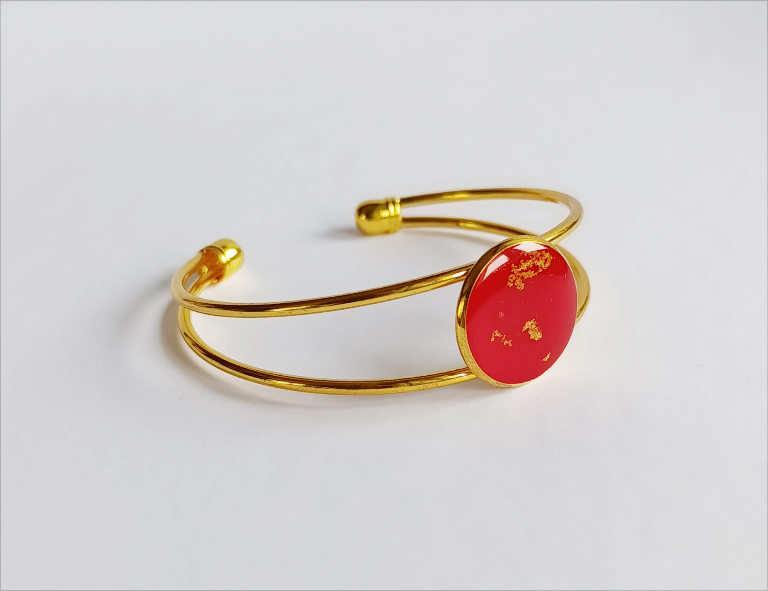 Luxusní dřevěná dekorace s červenou pryskyřicí.
