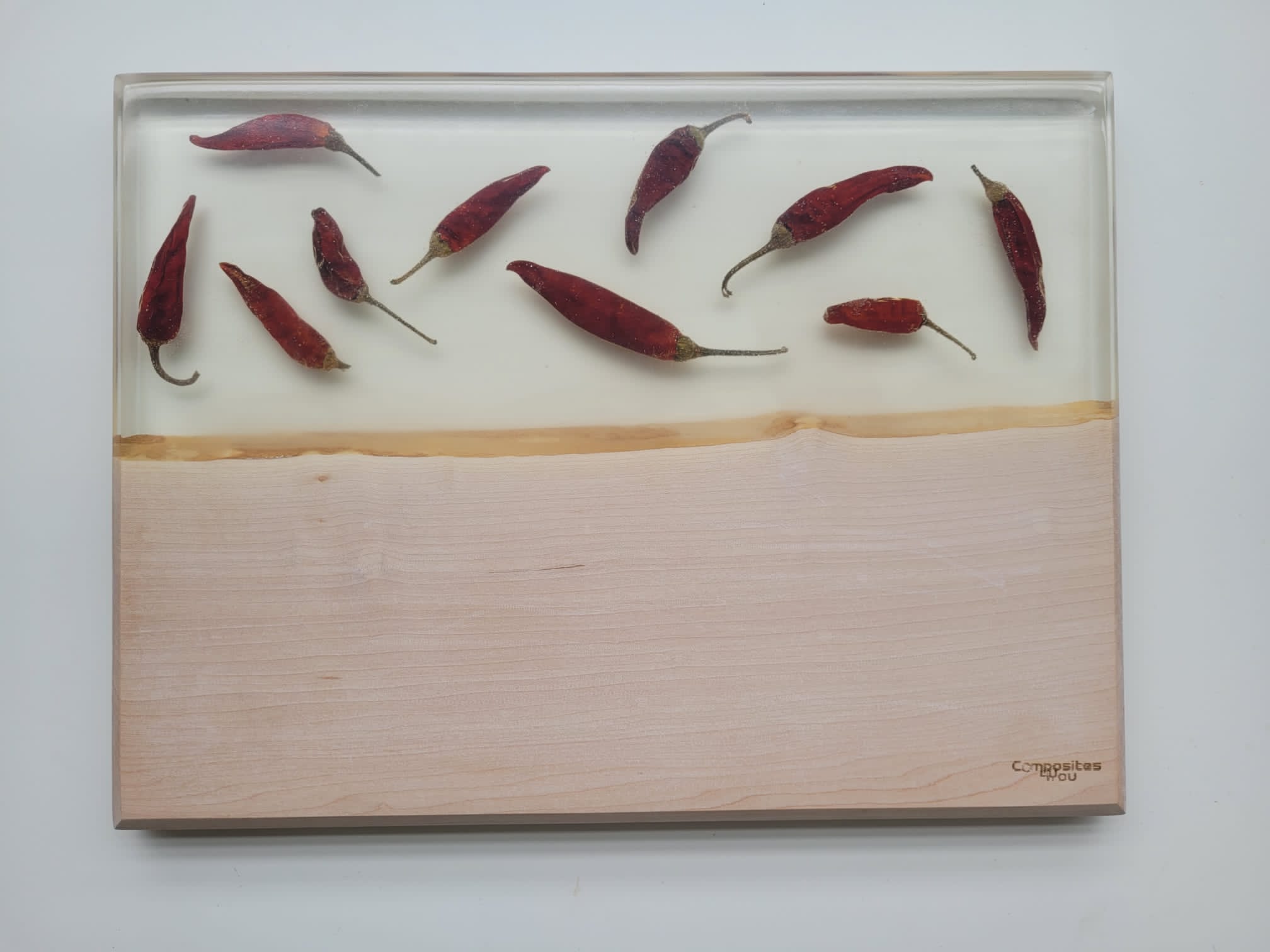 - Ručně vyráběné servírovací prkénko z javorového dřeva o rozměrech 40 x 30 cm.