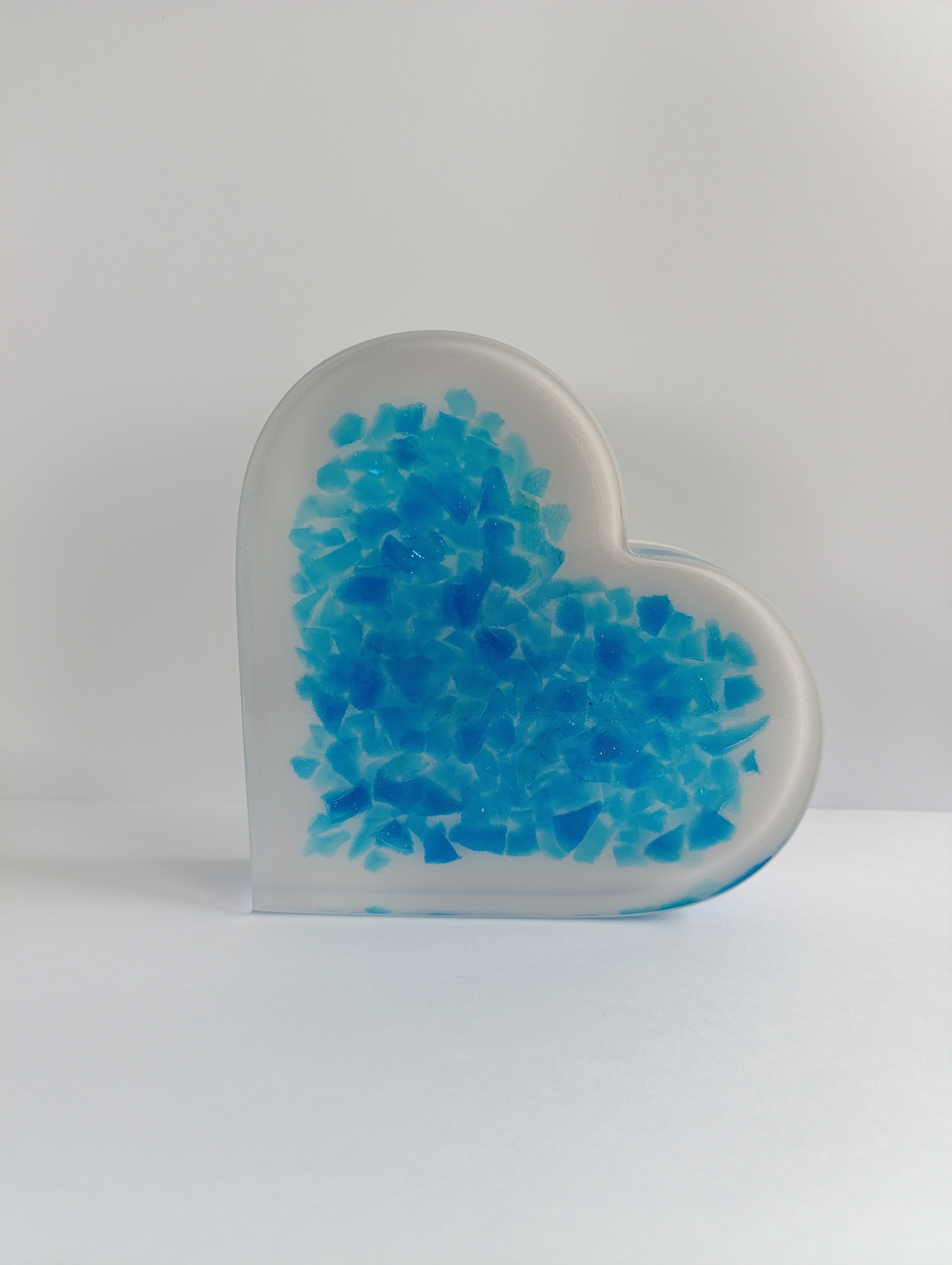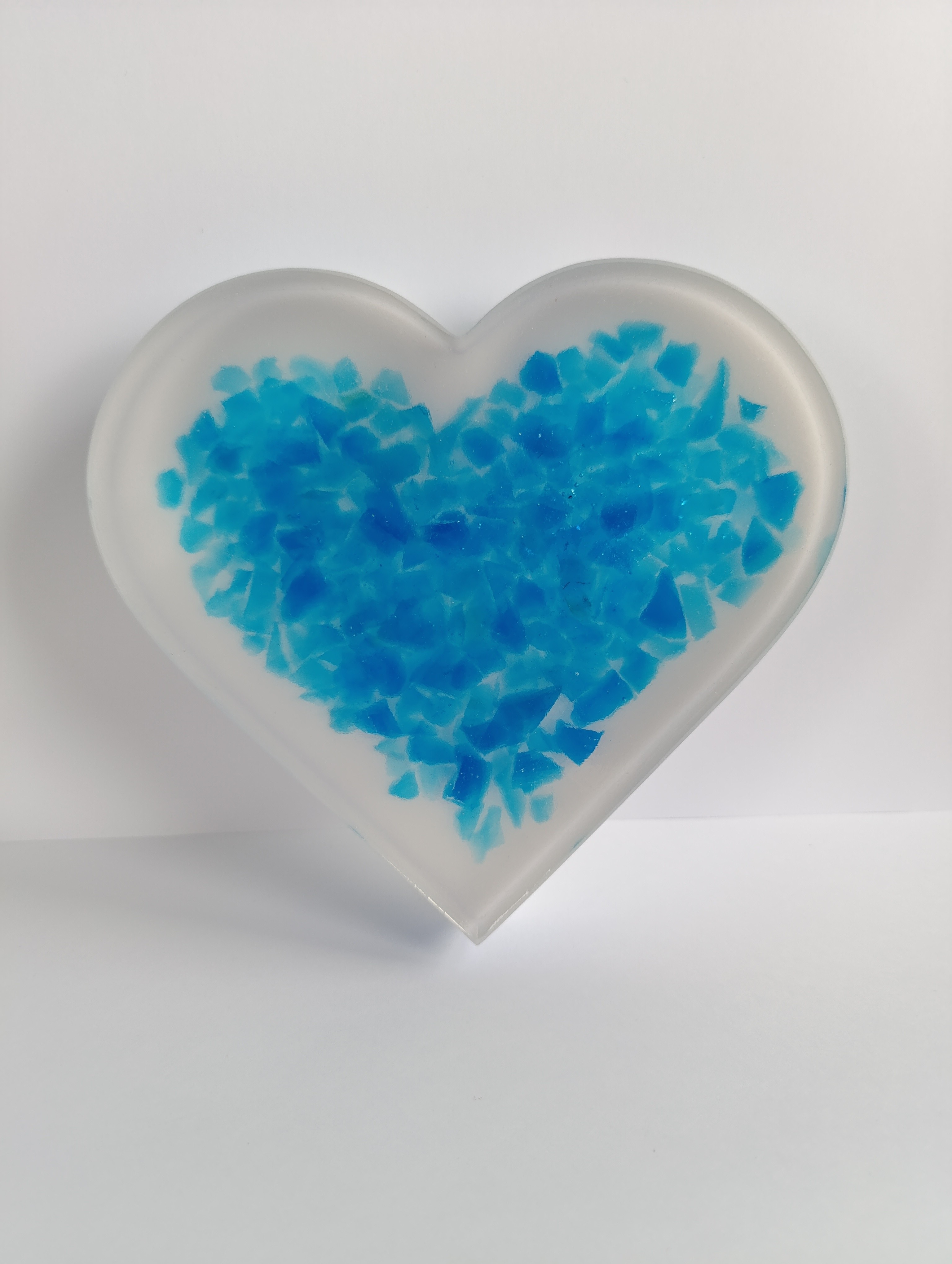 - Ručně vyrobená dekorace srdce - Střepy v kombinaci s bílou a transparentní pryskyřicí.