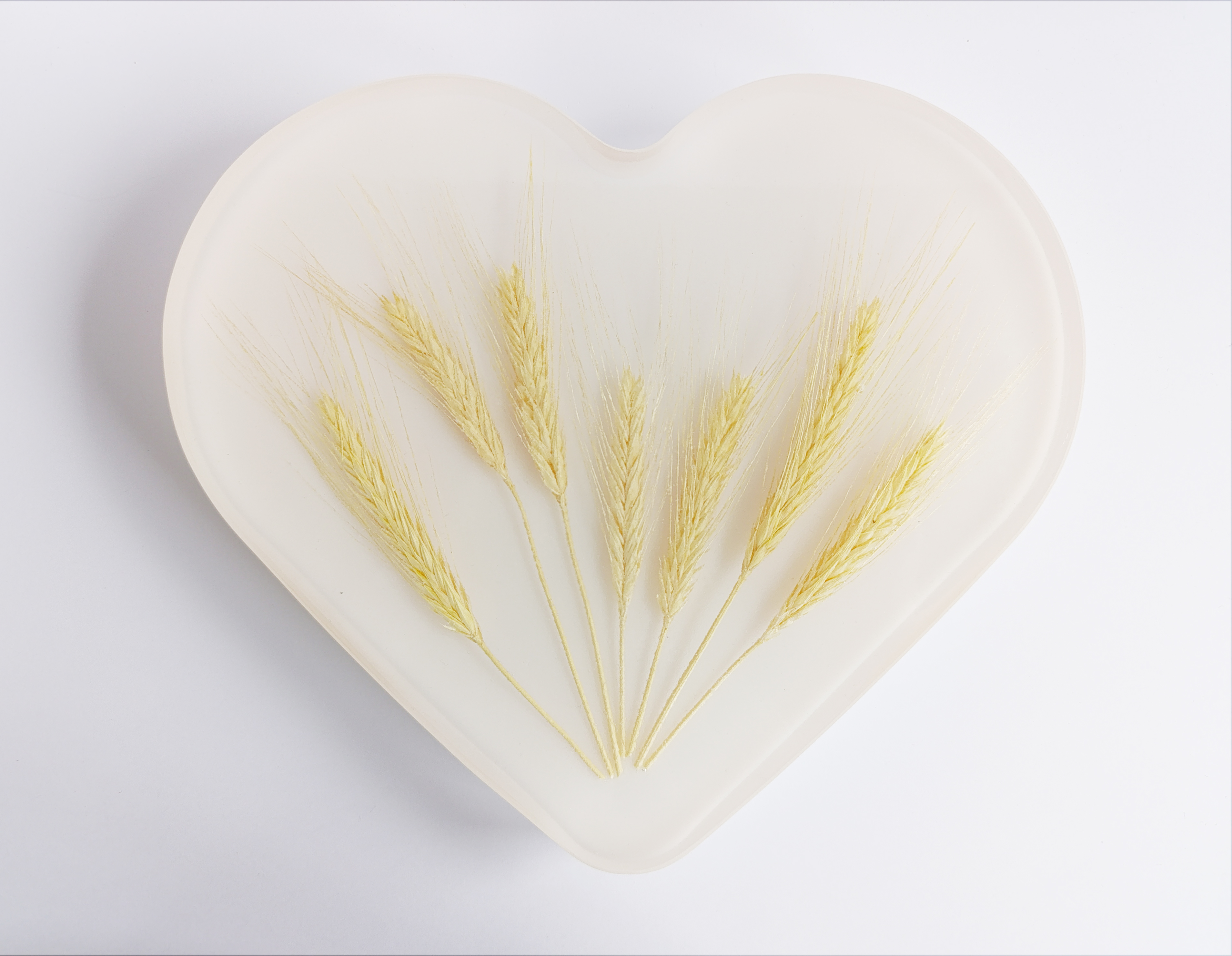 - Ručně vyrobená dekorace srdce - Obilné klasy v kombinaci s bílou a transparentní pryskyřicí.
