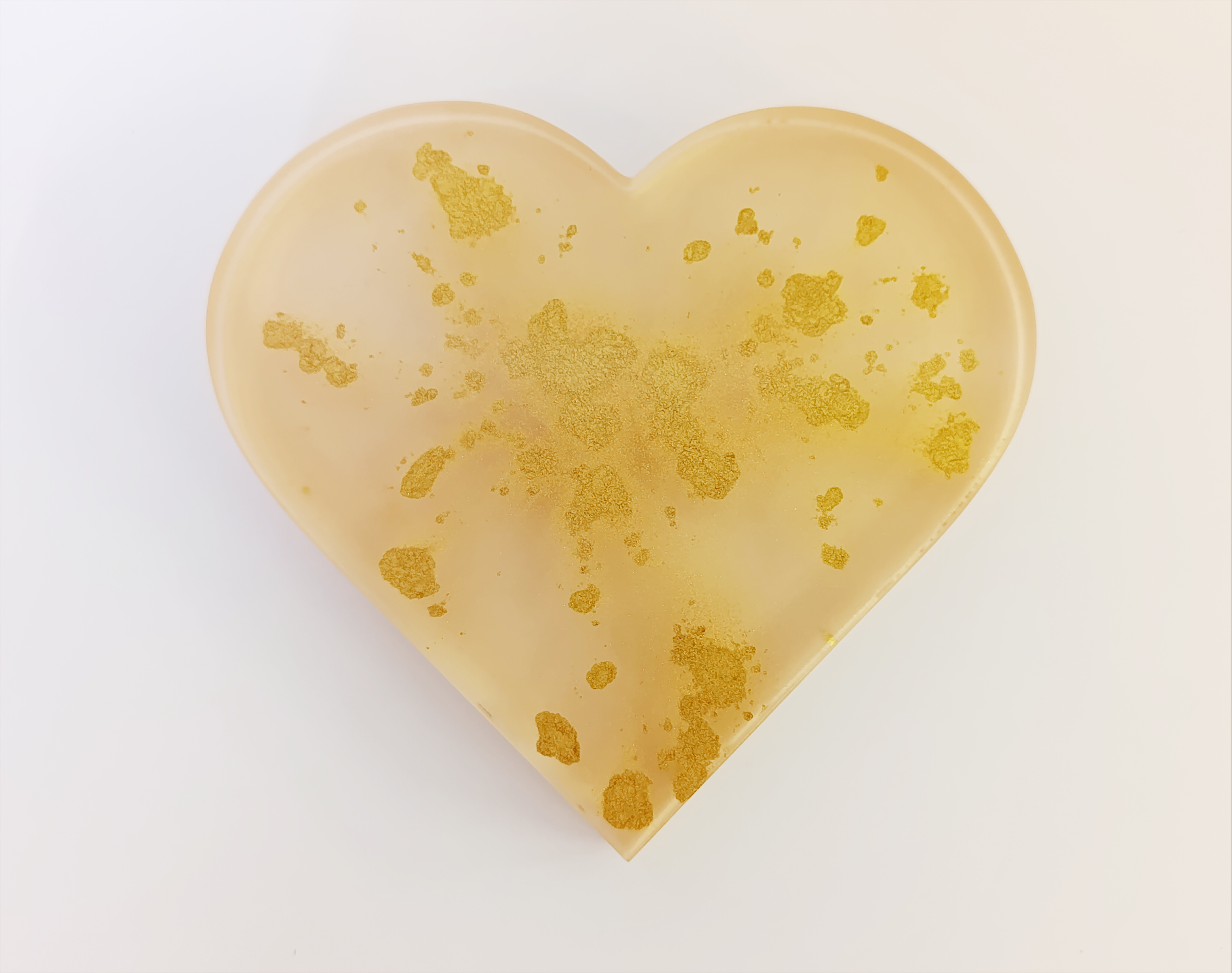 - Ručně vyrobená dekorace srdce - s bílou pryskyřicí a zlatým práškem.