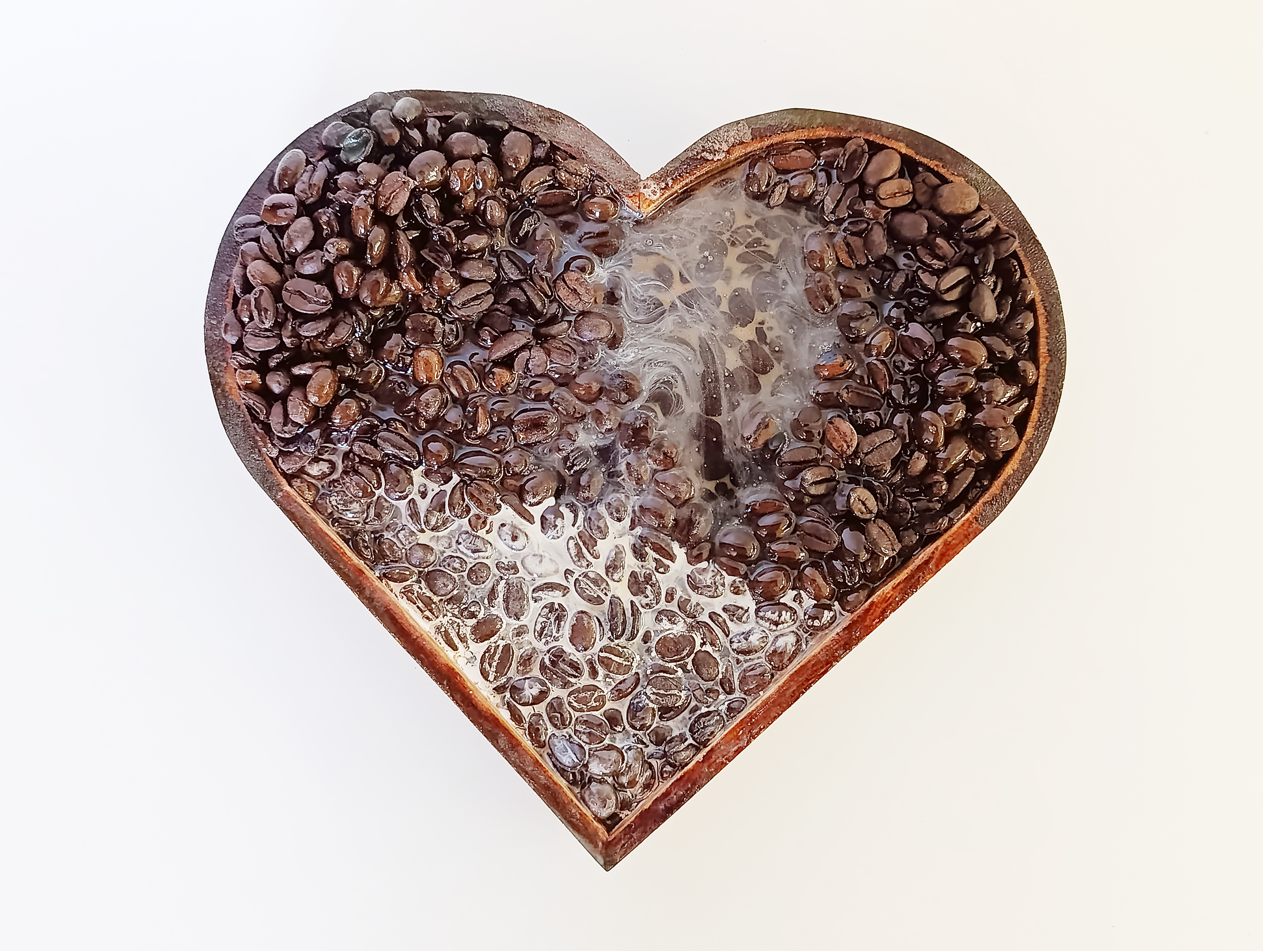 - Ručně vyrobená dekorace srdce - Kávová zrna v kombinaci s transparentní pryskyřicí.