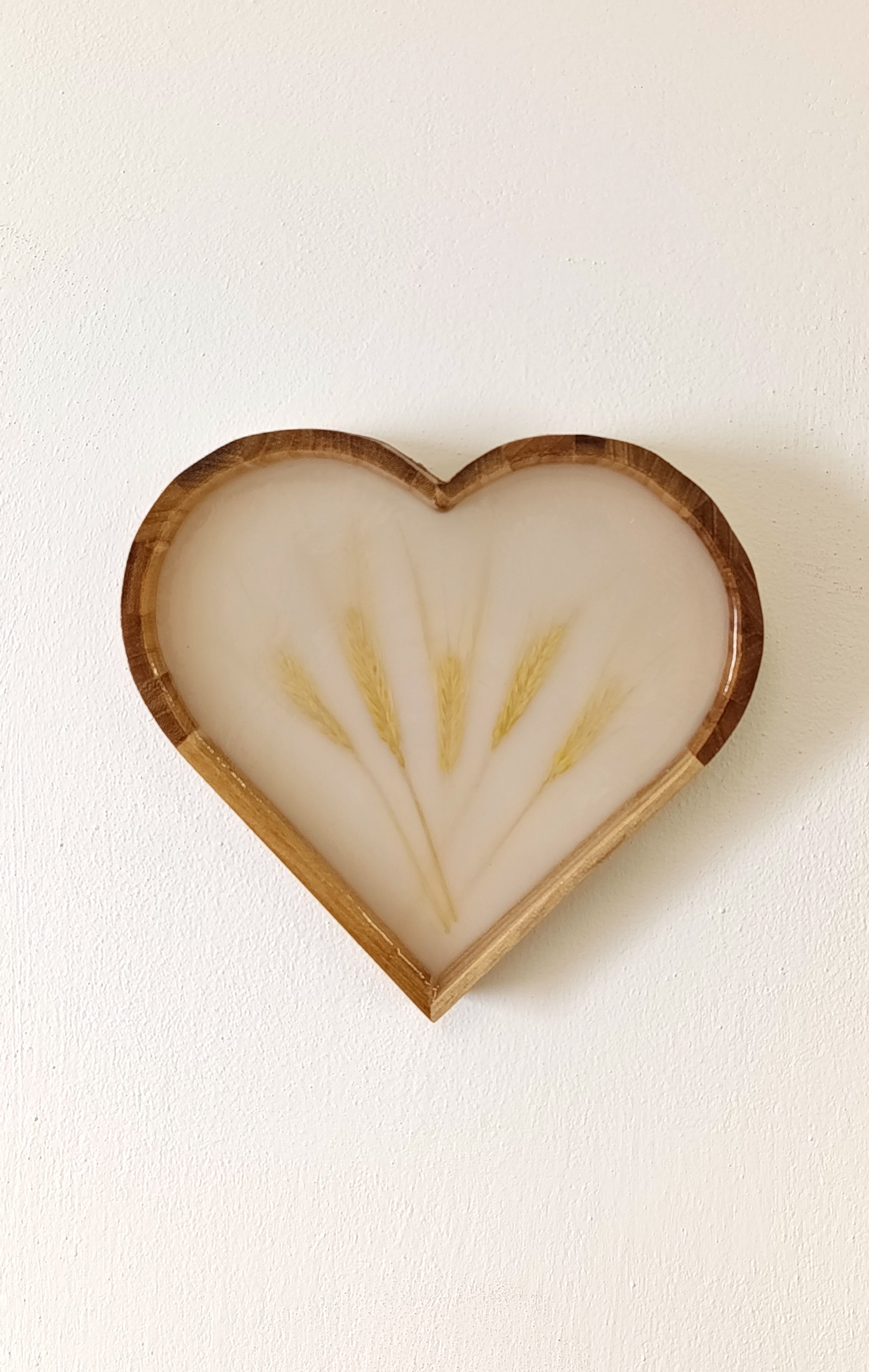 Malé servírovací prkénko o rozměrech 20 x 30 cm dekorované sušeným obilím.