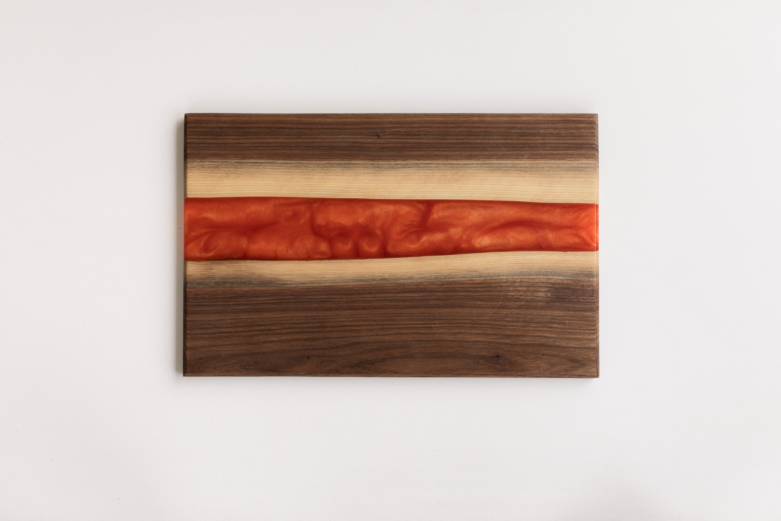 - Ručně vyráběný servírovací tác z ořechového dřeva o rozměrech 38,5 x 24,5 cm.